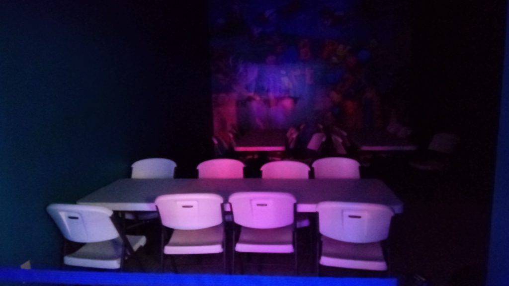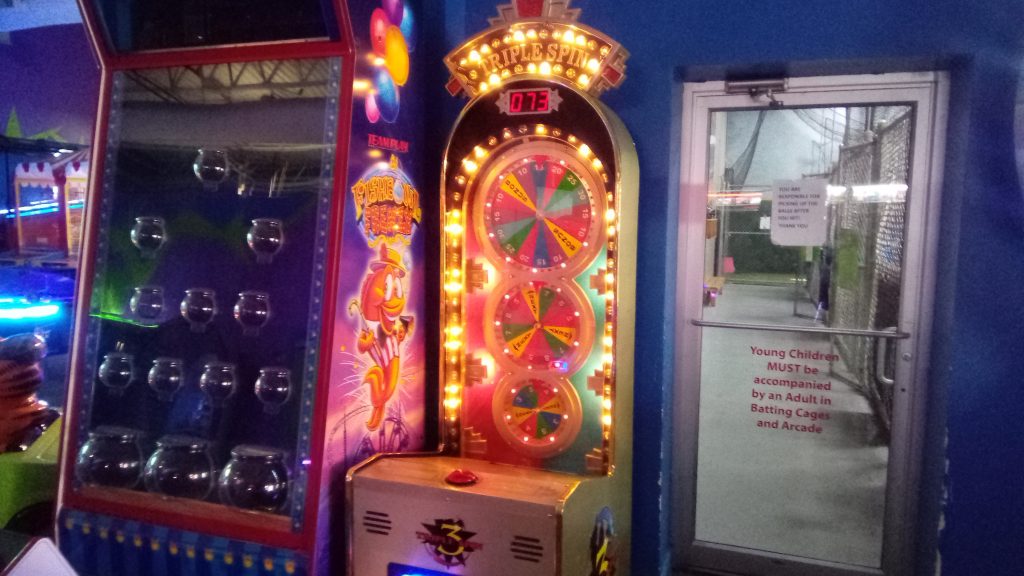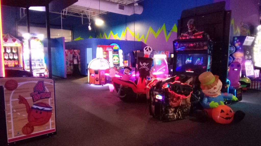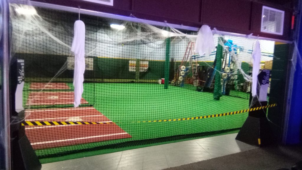 The inside was pretty lively. They had batting cages awkwardly shoved into a side room. Lots of neat decorations like the Halloween Spirit Store inflatables that gave it some personality.